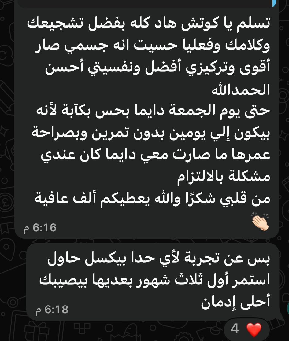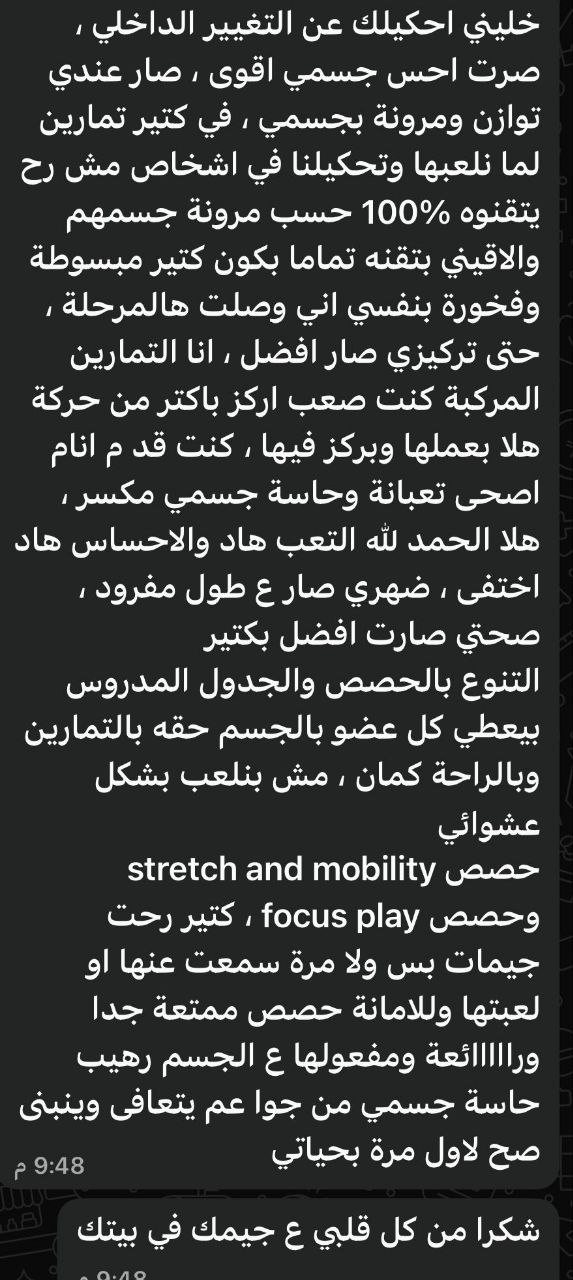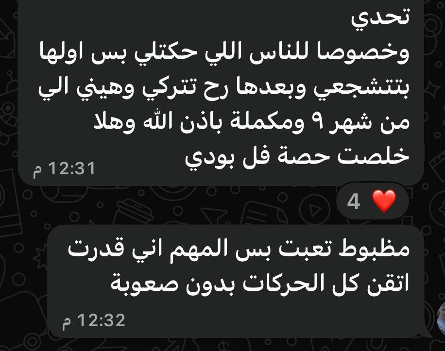 انسي فيديوهات اليوتيوب المملة! انضمي لحصصنا المباشرة.. المدرب يتابعك، يصحح أخطاءك، ويحفزك لتصلي لهدفك وأنتِ في مكانك بكل خصوصية وراحة.